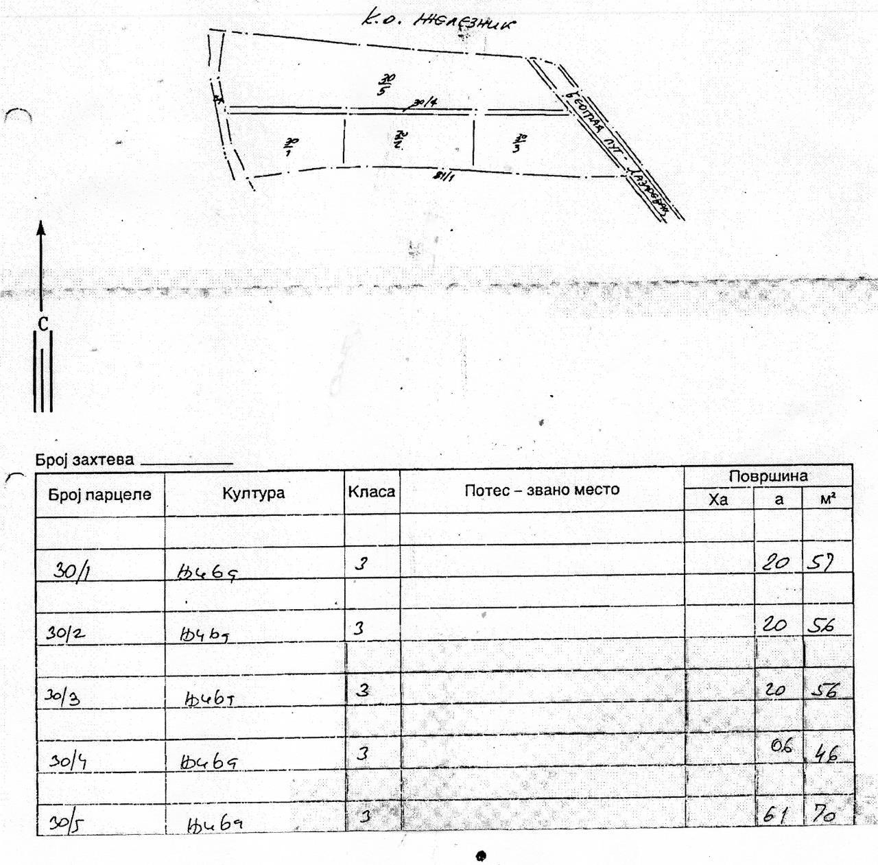 | Na prodaju zemljište Sremčica, parcela u komadu 130 ari po ceni: jadan ar/ 5000e. U pitanju je pet parcela što se vidi i na kopiji plana. U ponudi je poljoprivredno zemljište, njive 3. klase, svojina privatna. Na glavnom putupu između Železnika i Sremčice. Zemljište je pod suncokretom. Plac ima prilaz sa dve strane. Cena ukupno 650 000e Agencijska provizija 2 % plaća kupac | |