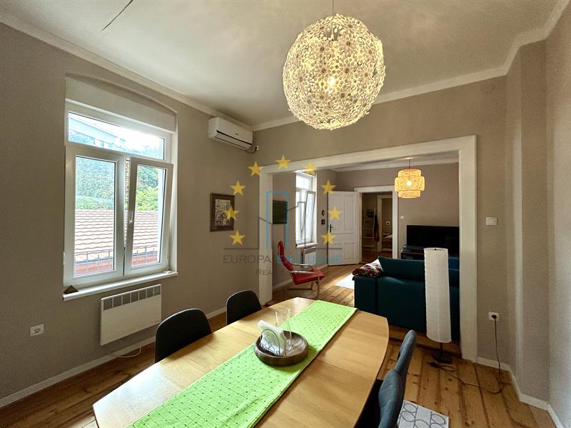 | U prilici smo da vam ponudimo odličan stan koji se nalazi u samom srcu grada, na nekoliko minuta od trga Slavija i Hrama Sv. Save. Stan se nalazi u dvorišnoj zgradi (ulaz iz zgrade koja je orijentisna ka ulici Bulevar oslobodjenja), na 1. spratu, jednostrano orijentisan, izuzetno svetao, po strukturi je trosoban- sastoji se od ulaznog hodnika, dnevnog boravka, odvojene trpezarije, kuhinje, spavaće sobe, ostave i kupatila, poseduje terasu od 23m2 i dva zasebna ulaza, grejanje na struju, klima. Grejna površina stana je 76m2 Stan je kompletno renoviran (uključujući i krov), prodaje se kompletno namešten, sa vrlo kvalitetnim nameštajem. Uknjižen, bez tereta i zabeležbi, useljiv. Agencijska provizija 2% | |